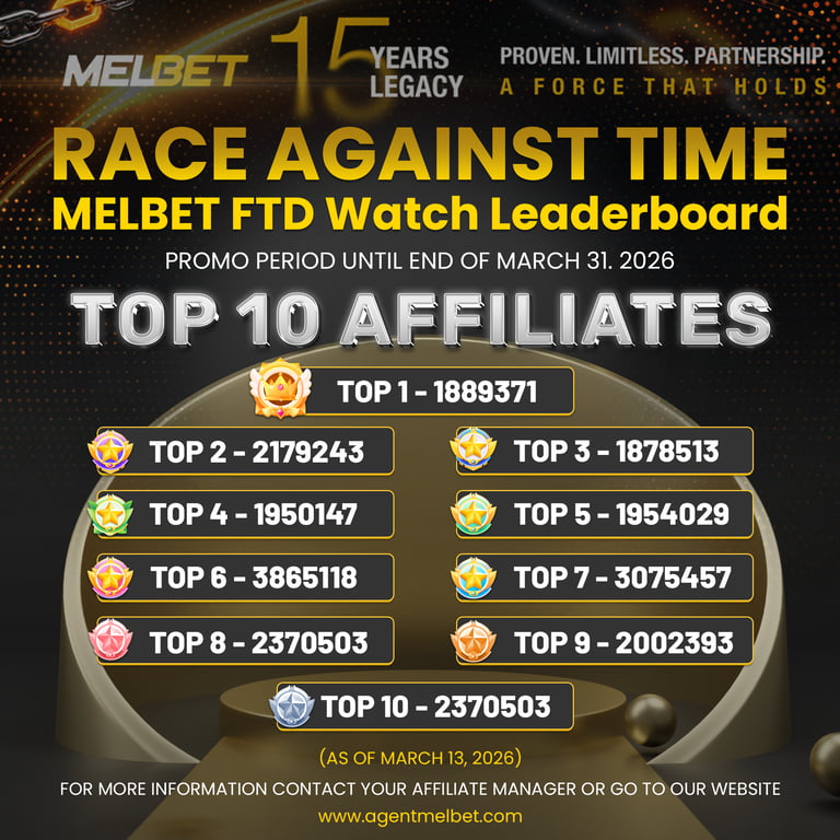 This challenge is your chance to push your performance to the next level and earn recognition among the best Melbet affiliates worldwide.